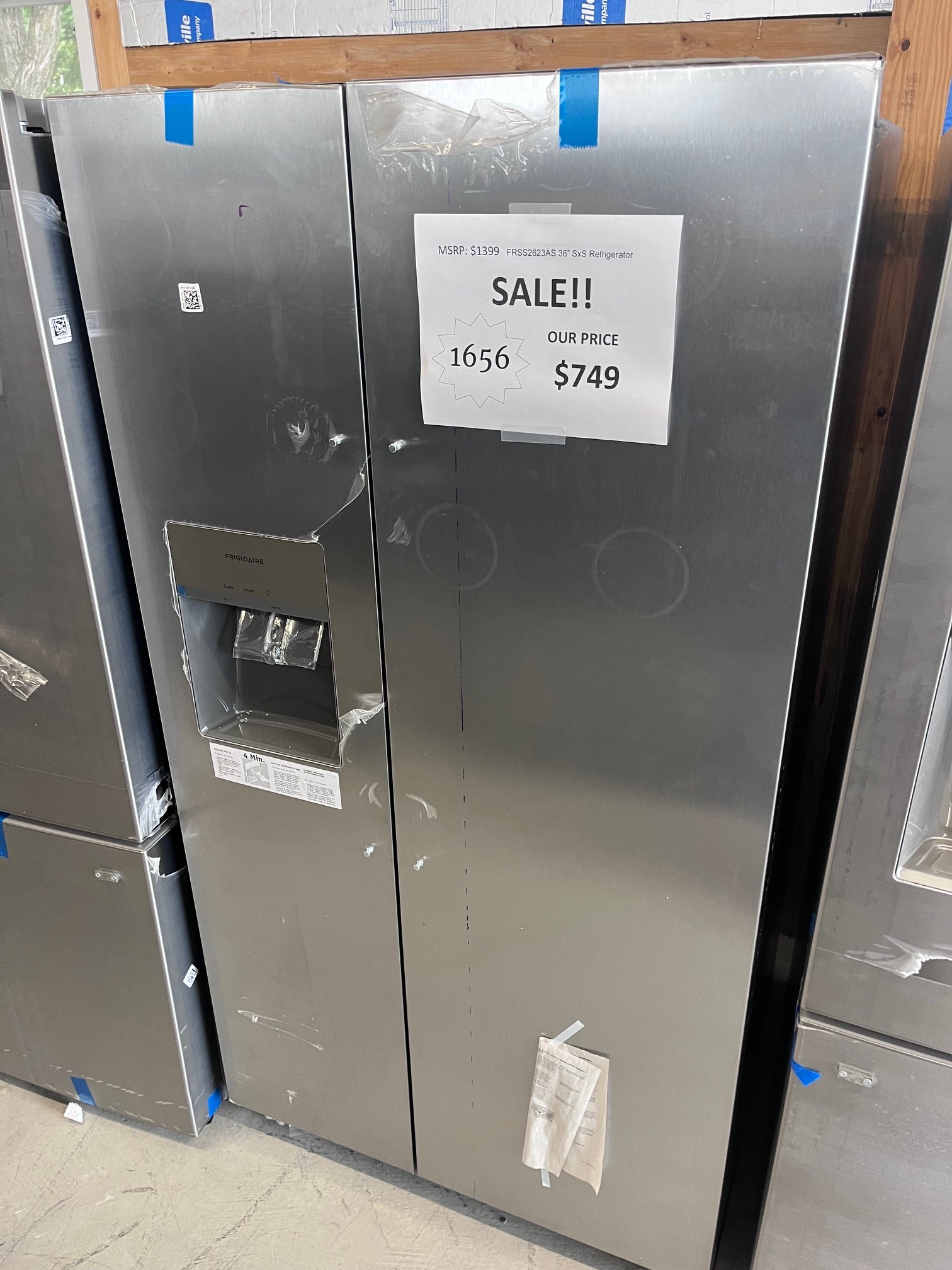 #1656- Frigidaire 36" 25.6-cu ft Side-by-Side Refrigerator with Ice Maker ,Water and Ice Dispenser ( Stainless steel )