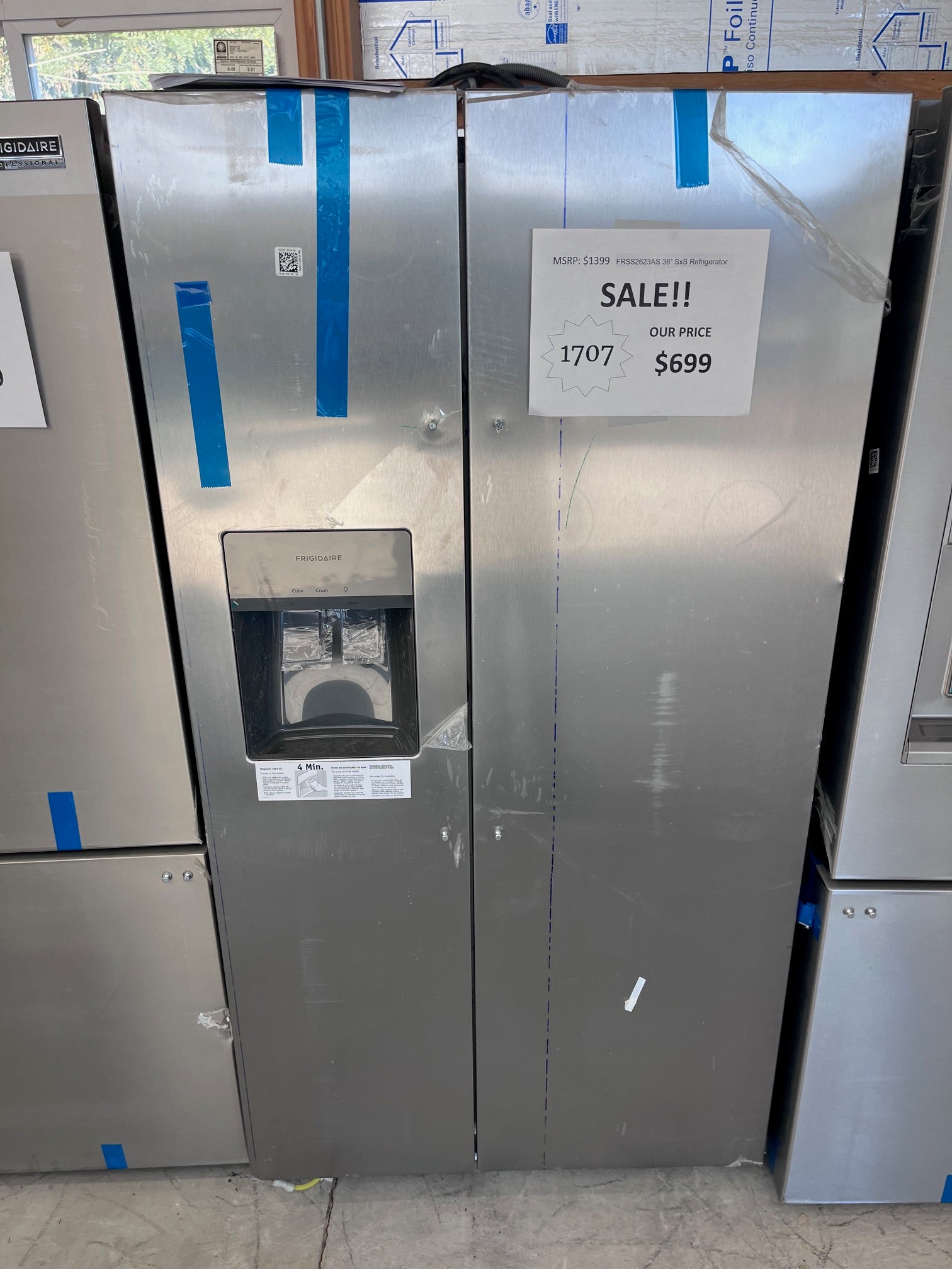 #1707- Frigidaire 36 in. 26 cu. ft. Standard Depth Side by Side Refrigerator in Stainless Steel