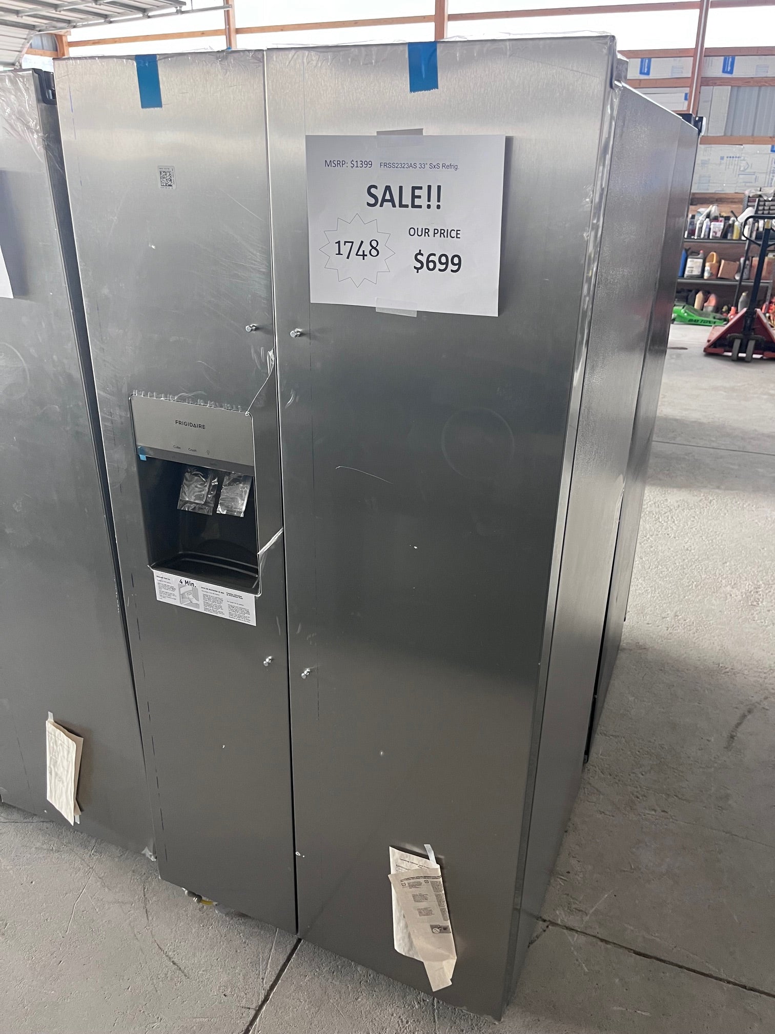 #1748- Frigidaire 33 in. 22.3 cu. ft. Standard Depth Side by Side Refrigerator in Stainless Steel